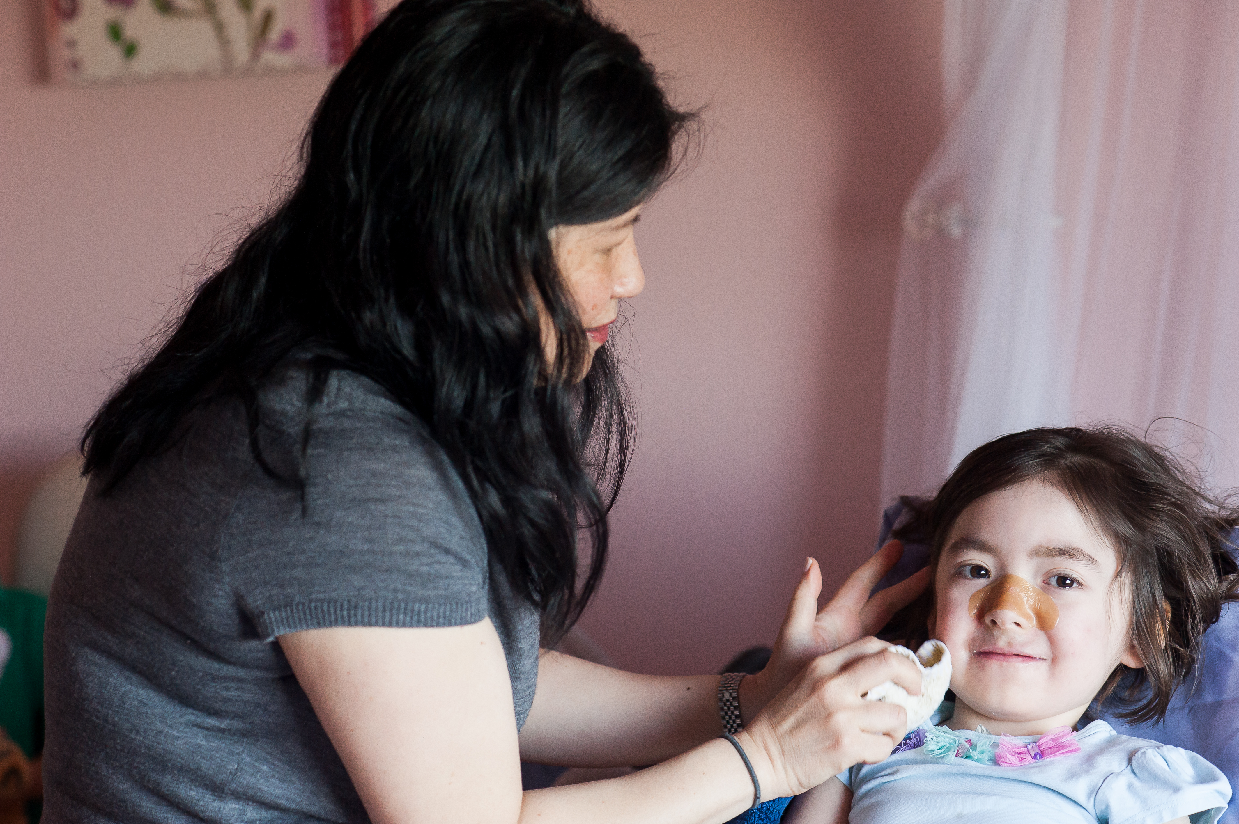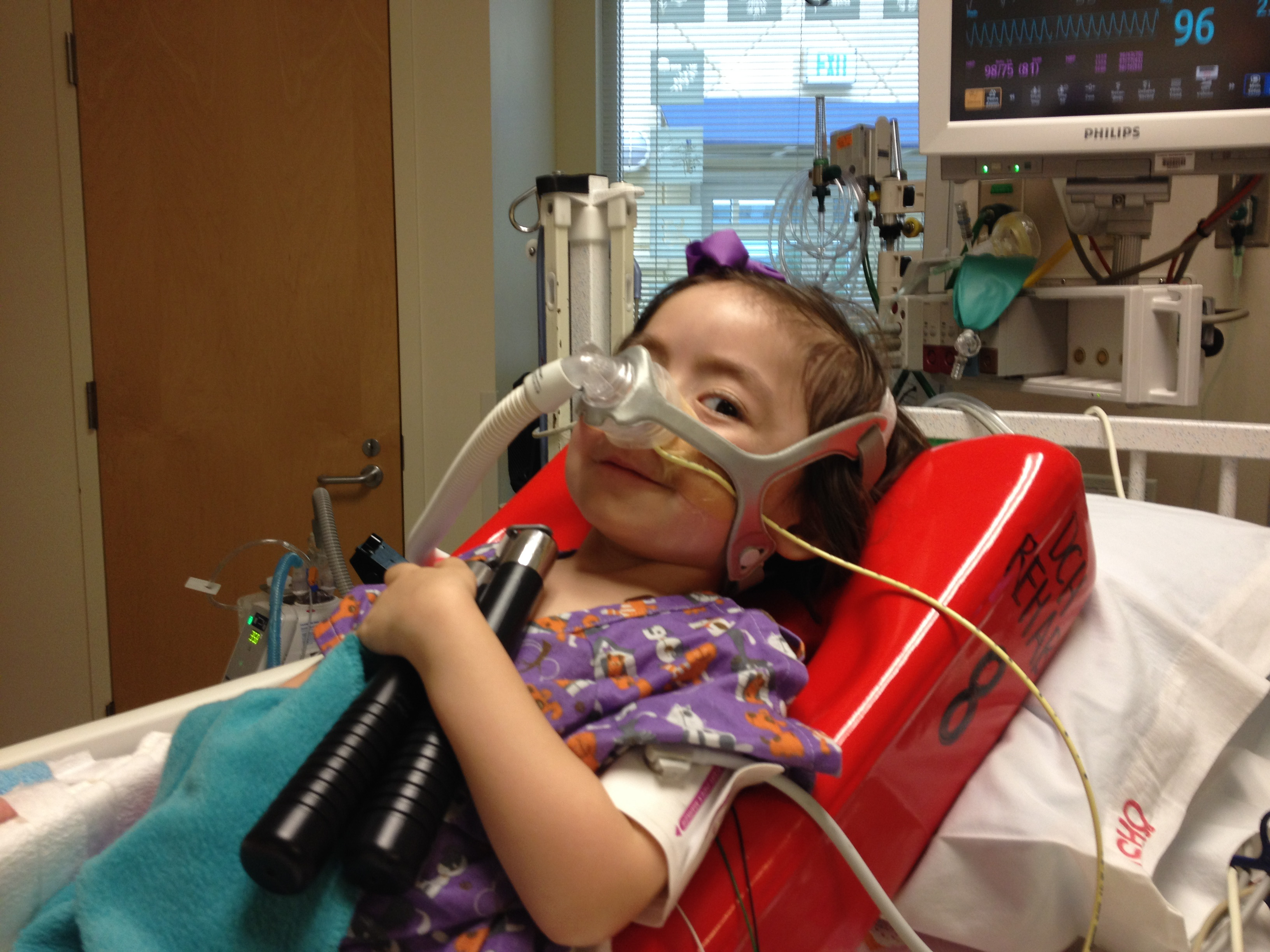 Background: Moving J from sitting to laying down is complicated – there are tubes and lines to watch. It’s one of the main things that a new caregiver has to learn.